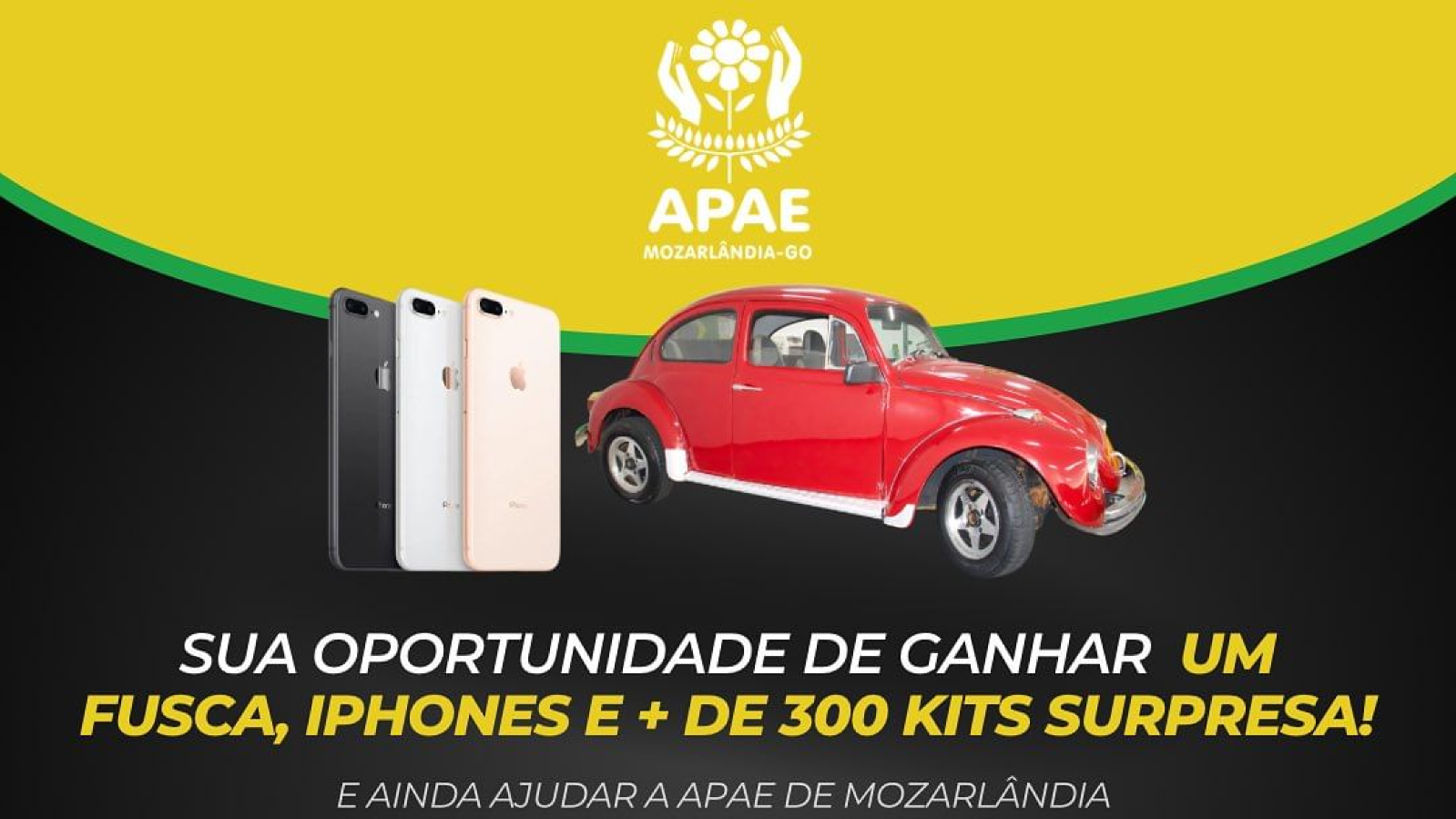 Você não vai querer perder a oportunidade de participar da nossa Rifa Solidária, onde o prêmio principal é um Fusca, gentilmente doado pelo Sr. João Stein! Além disso, mais de 300 kits surpresa, entre os brindes, temos 2 iPhones para serem sorteados, garantindo que haja muitas chances de ganhar, mesmo que o Fusca não seja seu!