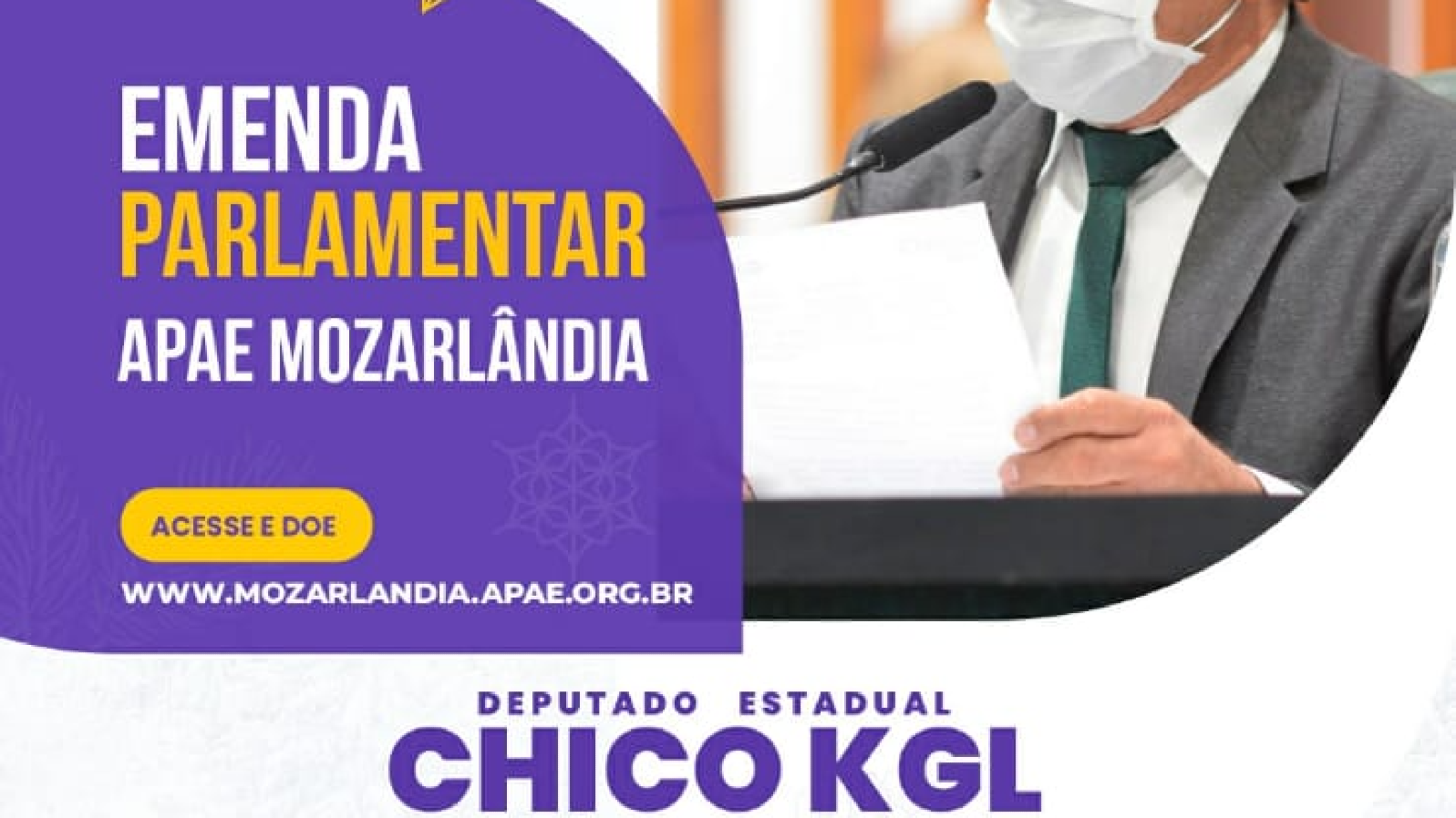 Se você quer ver um mundo diferente, faça diferente. Suas atitudes e suas ações, sejam elas pequenas ou grandes, vão sempre refletir no mundo. Um trabalho de formiguinha, mas o passo seria diferente se não o fizéssemos. Com estas palavras agradecemos ao Deputado Chico Kgl, pela emenda parlamentar destinada a APAE de 50.000,00 ( cinquenta mil reais), para a construção do prédio da Apae.